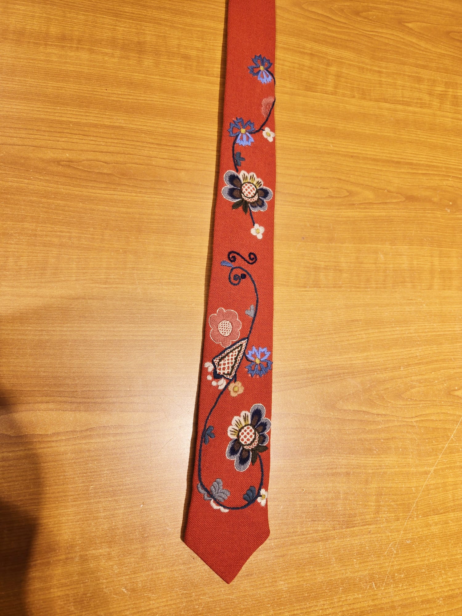 Håndbrodert slips med samme mønster som Bolsøybunad.