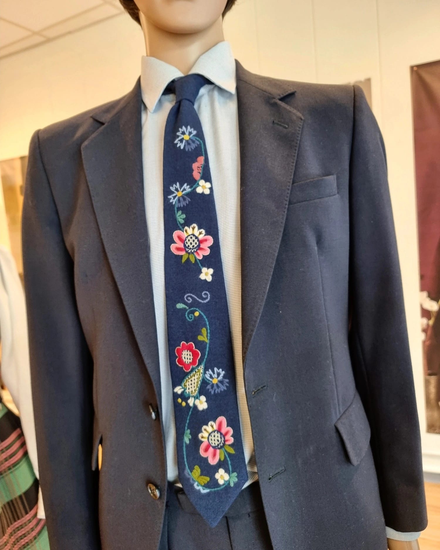 Håndbrodert slips med samme mønster som Bolsøybunad.